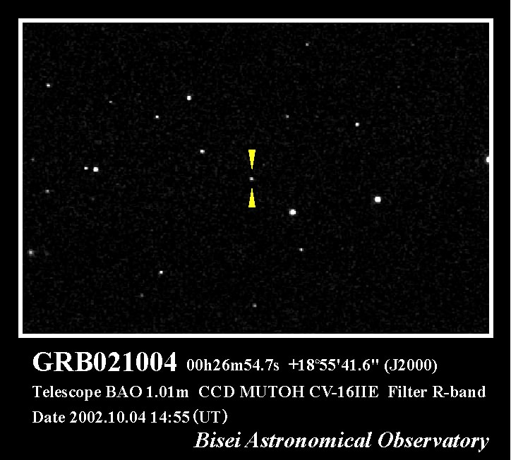 2002年10月4日に21時6分(日本標準時)にHETE2衛星によってガンマ線バーストが検出されました。