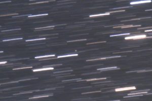 2025年1月26日の夜間公開中、光柱(こうちゅう)と呼ばれる大気現象が見られました。光柱とは、街灯りなどの光が大気中の氷の結晶によって反射され、色とりどりの光芒となって観測されるものです。大気中に氷晶が多く、かつ風が弱いなどの気象条件が重なった時に見ることができますが、なかなかお目にかかる機会は少ないです。肉眼では白っぽい紐上の雲のように見えますが、写真に撮ると多様な色で光っている様子がよくわかります。街灯りが反射して見えているものなので、いわば「光害」の一種かもしれませんが、星空と織りなす姿は幻想的です。